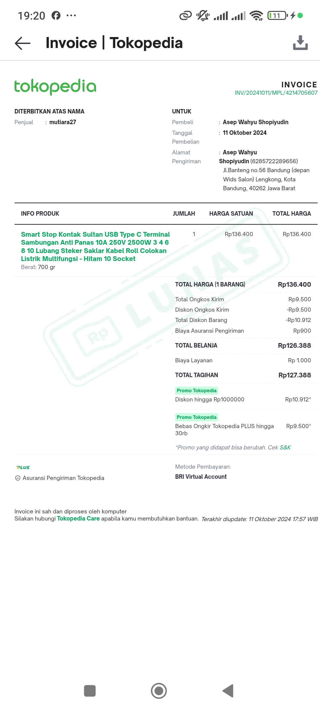 TRANSFER - Rp. 2,002,500 (D) Lainnya