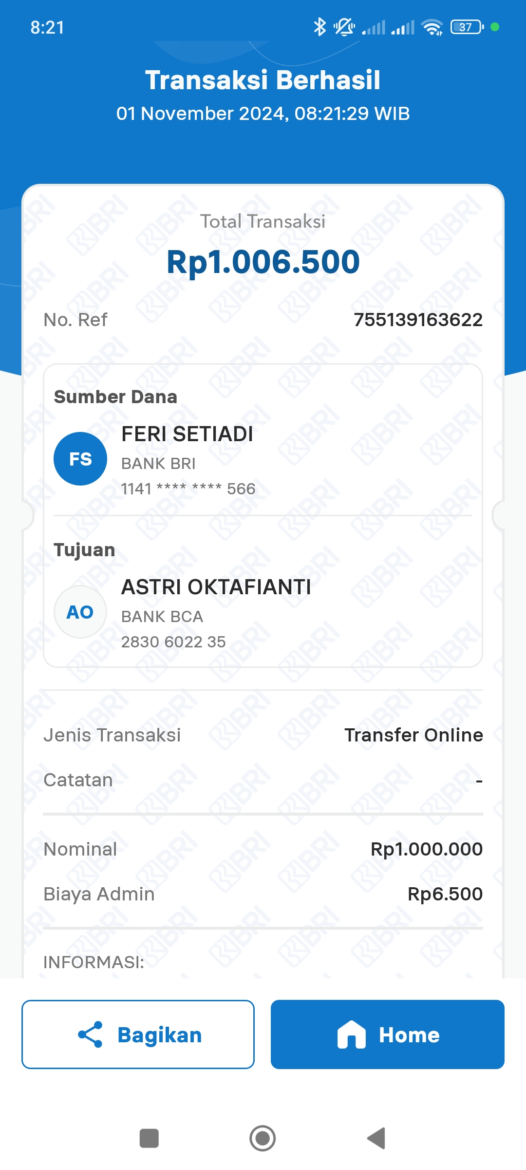 QRIS BRI + Rp. 434,000 (K) QRIS BRI